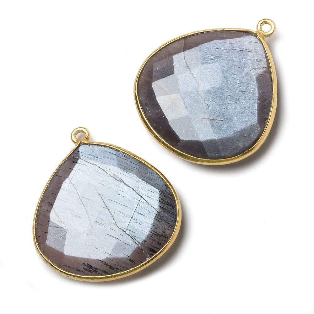 26mm Vermeil Platinum Grey Moonstone faceted heart 1 ring Pendant sold as one piece per bag.