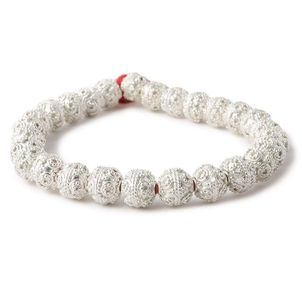 8mm Silver Plated Copper Round Bead Miligrain Circles 8 inch 27 pieces
