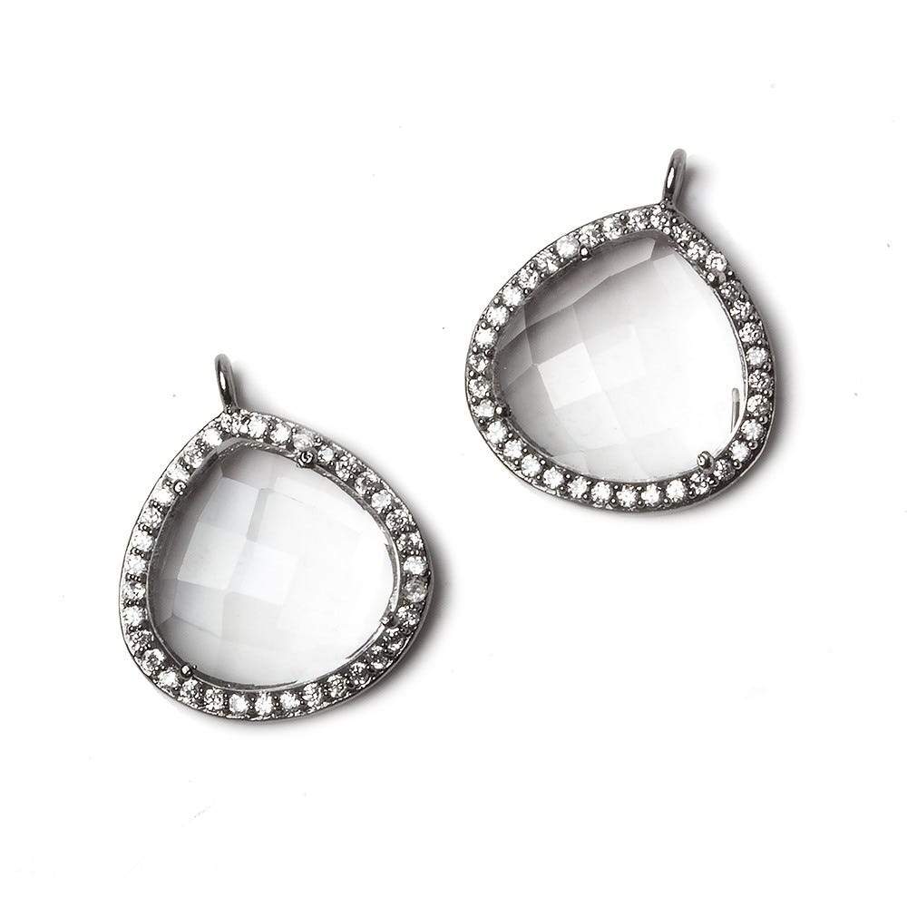 17x17mm Black Gold Bezeled Cubic Zrconia and Crystal Quartz Heart Pendant with one soldered ring, focal bead sold as 1 piece.