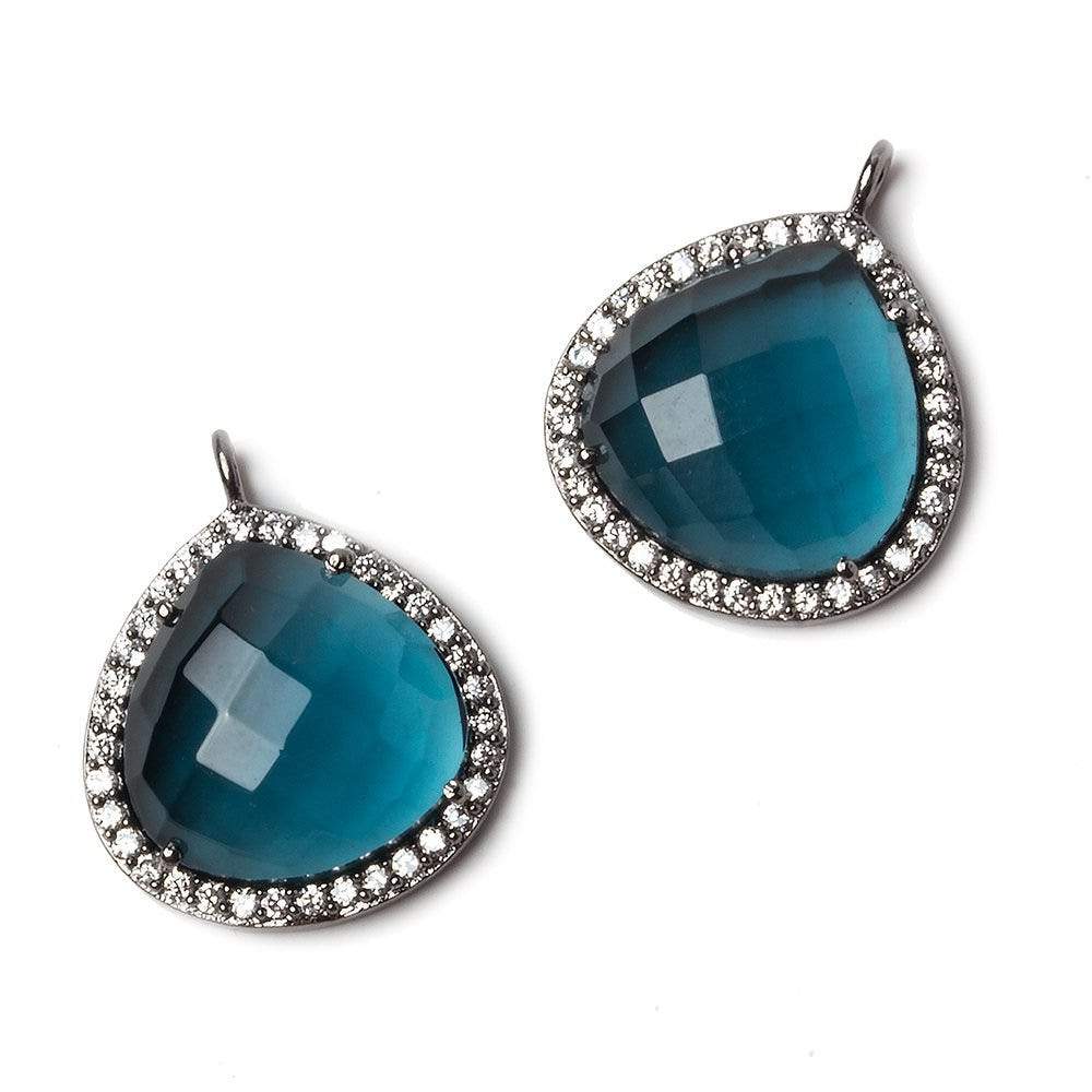 17x17mm Black Gold Bezeled Cubic Zrconia and London Blue Quartz Heart Pendant with one soldered ring, focal bead sold as 1 piece.