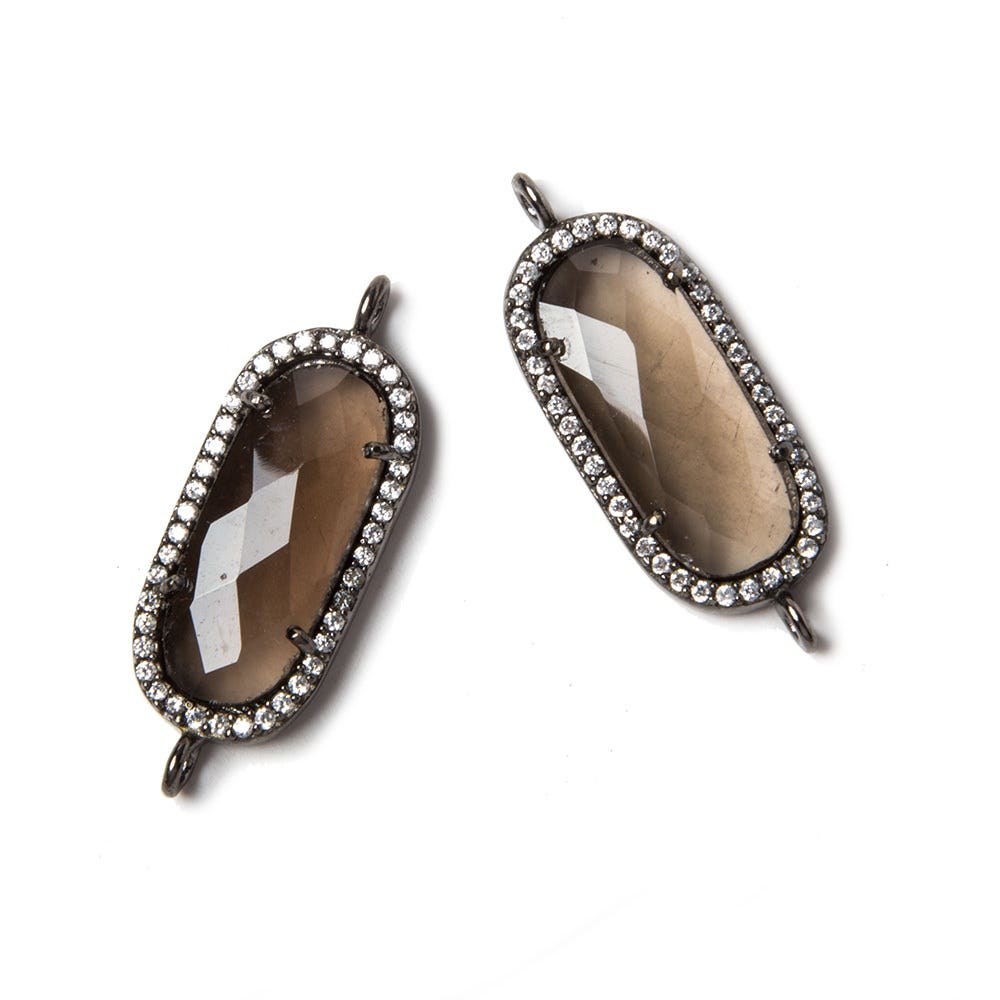 21x10.5mm Black Gold CZ Bezel Smoky Hydro Quartz Oval Connector 1 piece