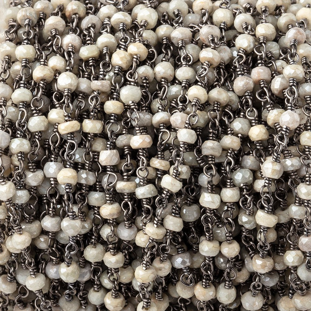3 mm Mystic Cream Sapphire faceted rondelle Oxidized Sterling Silver Rosary Chain sold by 1 foot increments has approximately 36 beads. (3 quantity = 36 inches continuious) Silver titanium coating on a natural cream tan Sapphire rondelle.
