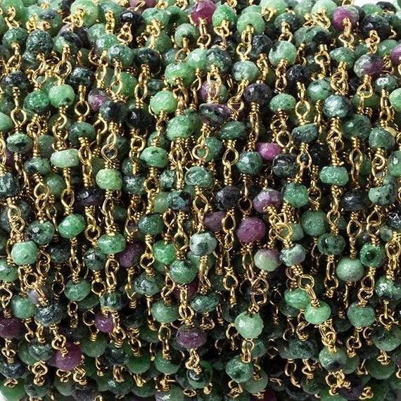 3mm Ruby in Zoisite faceted rondelle Gold Chain by the foot