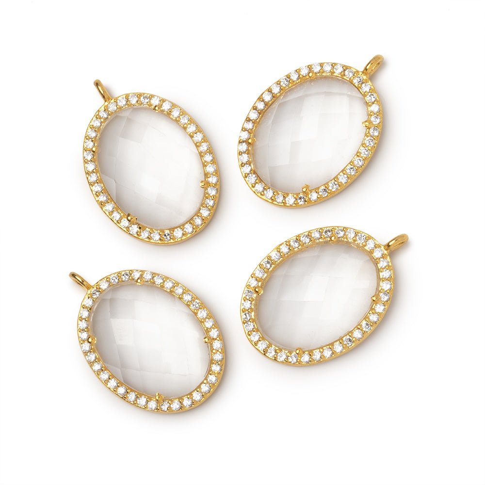 19x15mm Vermeil Bezel with pave' Cubic Zirconia brilliant rounds surrounding a Crystal Quartz faceted Oval with one 3mm side facing ring are well-made focals, crafted from high grade gemstone materials, and are sold as one piece.