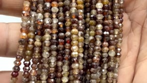 These exquisite 3.8mm Zircon Rondelle beads showcase masterful micro-faceting that captures and disperses light with remarkable brilliance. The carefully curated warm palette—featuring colorless sparkle, cognac depth, chocolate richness, and burgundy sophistication—creates sophisticated color harmonies ideal for refined jewelry designs. Each 15.25 inch strand contains 135 precisely cut beads, offering excellent versatility for both statement pieces and delicate accents. Zircon's natural refractive properties combined with the rondelle cut deliver exceptional sparkle and dimension, making these beads a premium choice for discerning designers seeking quality materials.
