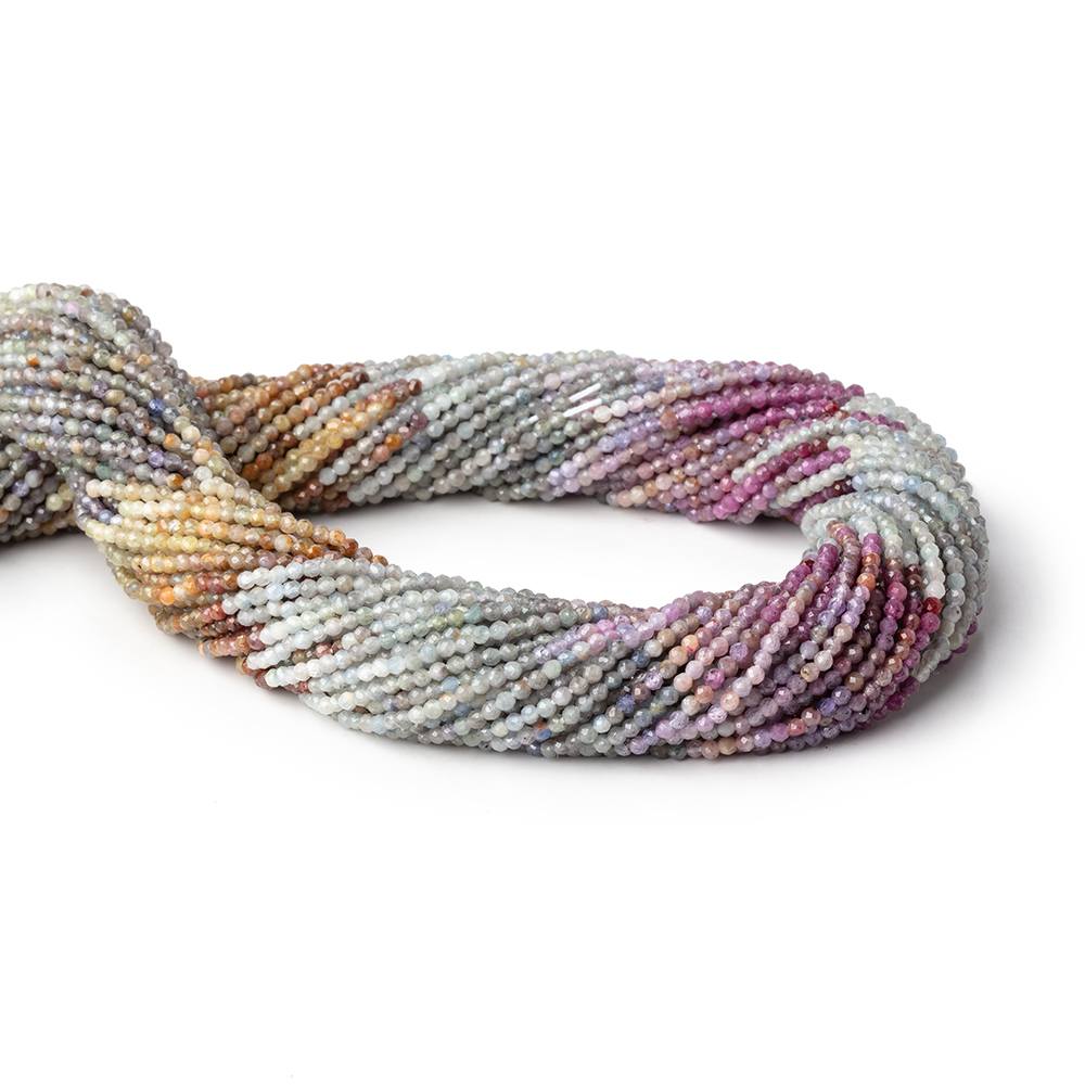 1.9mm average sized Natural Multi Color Umba Sapphire micro faceted round beads have a vitreous luster, great polish, a symmetrical shaped body, the gem bodies are a a range of lightly to moderately saturated fancy Sapphire hues with transparent to opaque qualities, and these rare Umba Sapphire beads from Tanzania are a well crafted strand of unique and stunning quality AAA grade bead group. One of the unique characteristics of Umba Sapphire is that they are nearly never color treated.