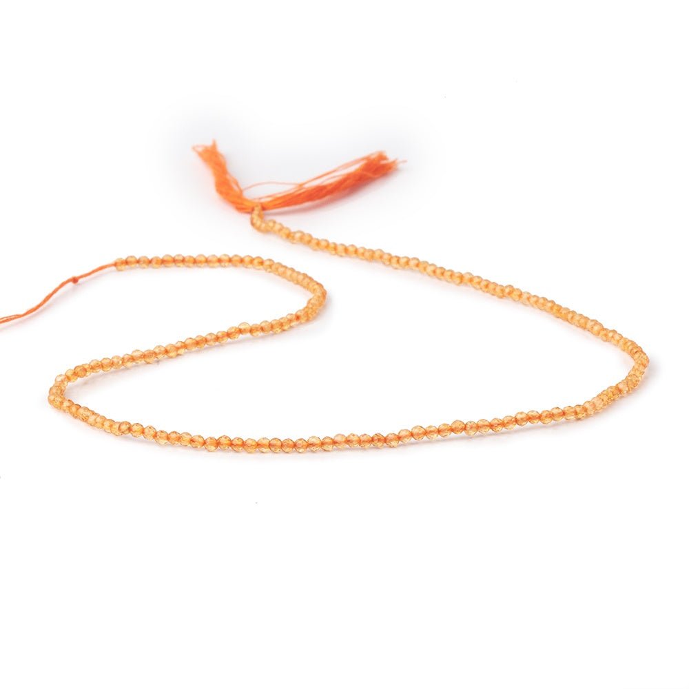 2mm Madeira Citrine micro faceted rounds have a highly vitreous luster on these expertly crafted beads showing excellent symmetry and brilliance with a perfect micro fine facet. AA