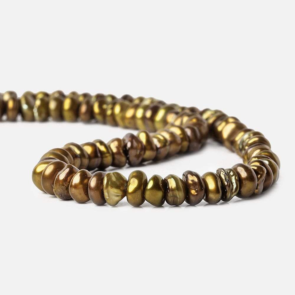 7mm Pea Green Center Drilled Keshi Freshwater Pearls 15 inch
