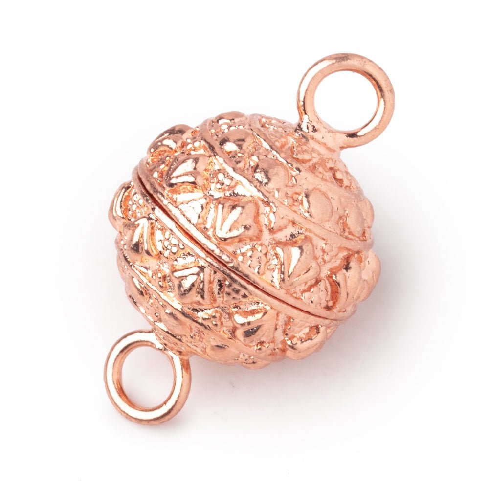 18mm Plated Round shaped Magnetic Clasps with an Egyptian design are sold as 1 finding and have two 6.5mm rings at each end with approximately 4mm inside diameter holes. The overall length of this clasp is approximately 30mm. This Magnetic Clasp is available in 22kt Gold Plated, Silver Plated, Antiqued Silver Plated, Rose Gold Plated, and Black Gold Plated.