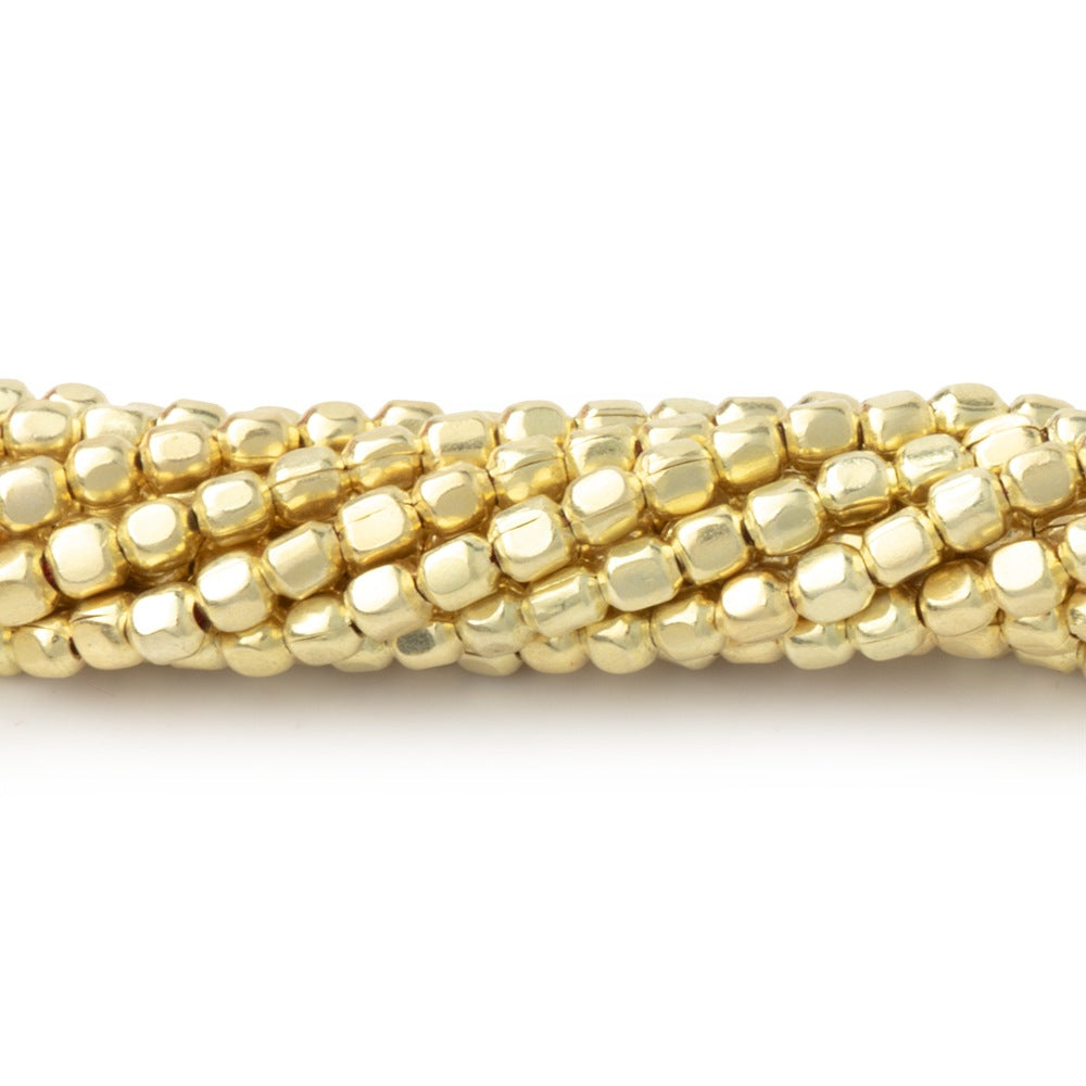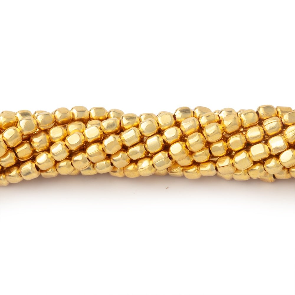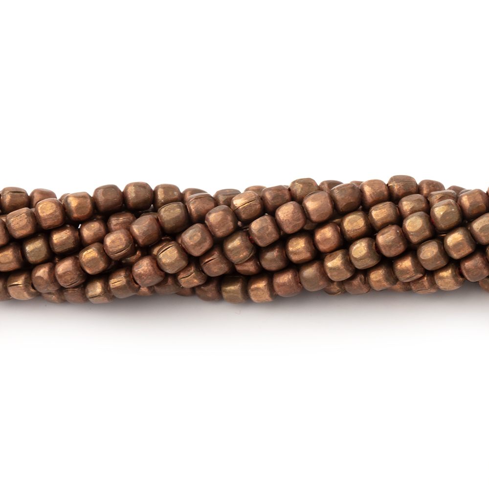 2mm Plain Cube Beads with rounded corners have a 0.8mm drill hole and are plated over Copper with a polished shiny finish. These 8 inch strands of beads are available in Silver, 14kt Gold, 22kt Gold, Rose Gold, Black Gold, and Raw Copper (has a matte finish).