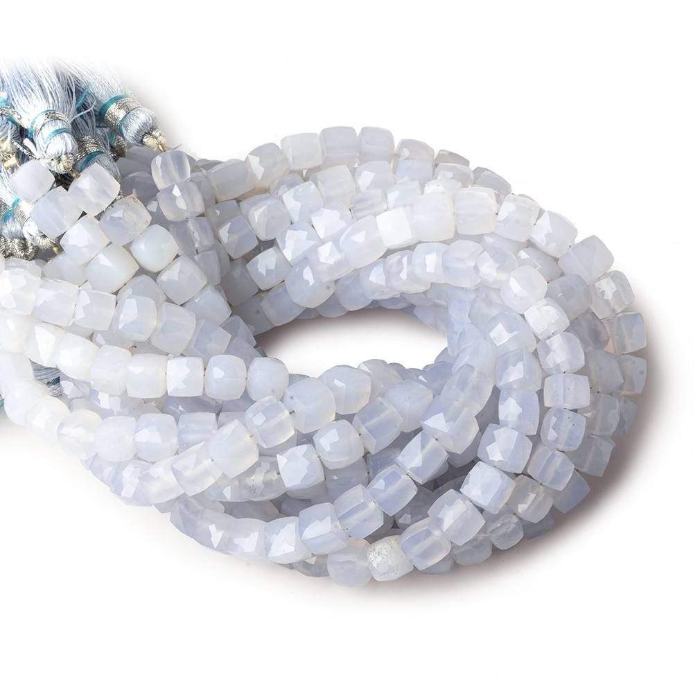 6x6mm Turkish Blue Chalcedony faceted cubes 8 inch 35 beads AA
