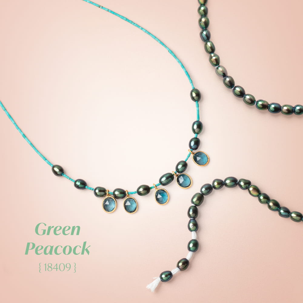 Large Hole Straight Drilled Oval Freshwater Pearls have excellent high luster and nacre, are well matched for quality on the strand. These Large Hole Freshwater Pearls are an excellent value for a smaller than average size oval shape. These pearls have a strong iridescent peacock overtone. This group of Large Hole pearls have a 1.5mm inside diameter and the drill holes are produced with a 5 step drill process to insure a cleanly drilled hole without abrasion to the nacre and the drill hole is a consistent diameter through the pearl. This group of freshwater Pearls are dyed per our custom specifications.
