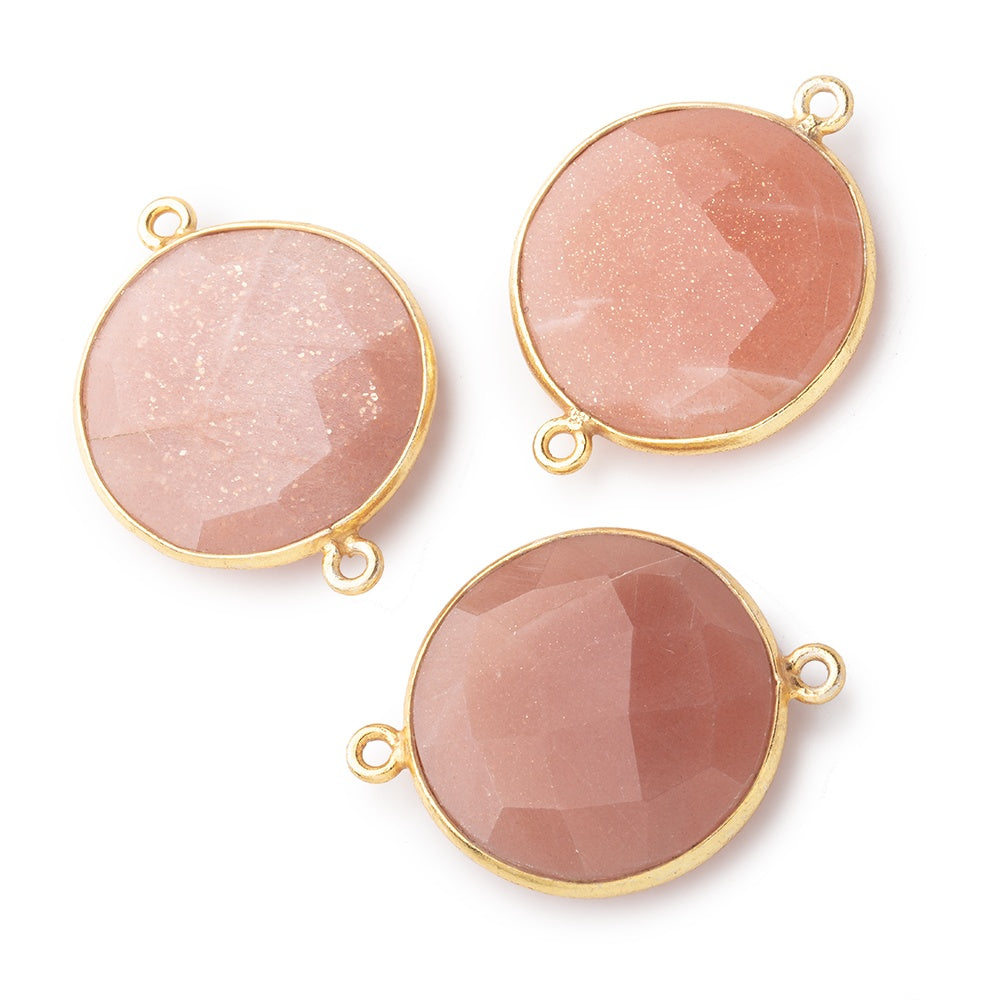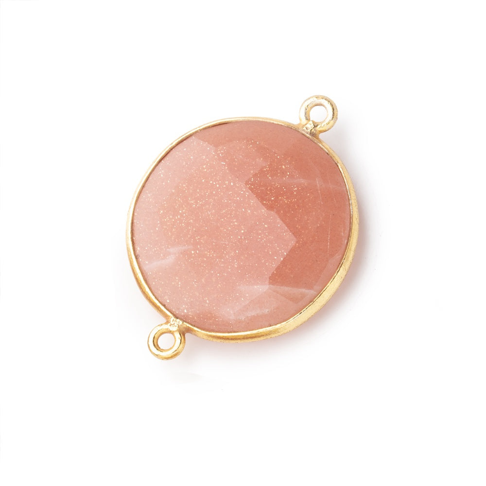 22mm Vermeil Bezeled Peach Moonstone Coin Connector sold as one focal piece.