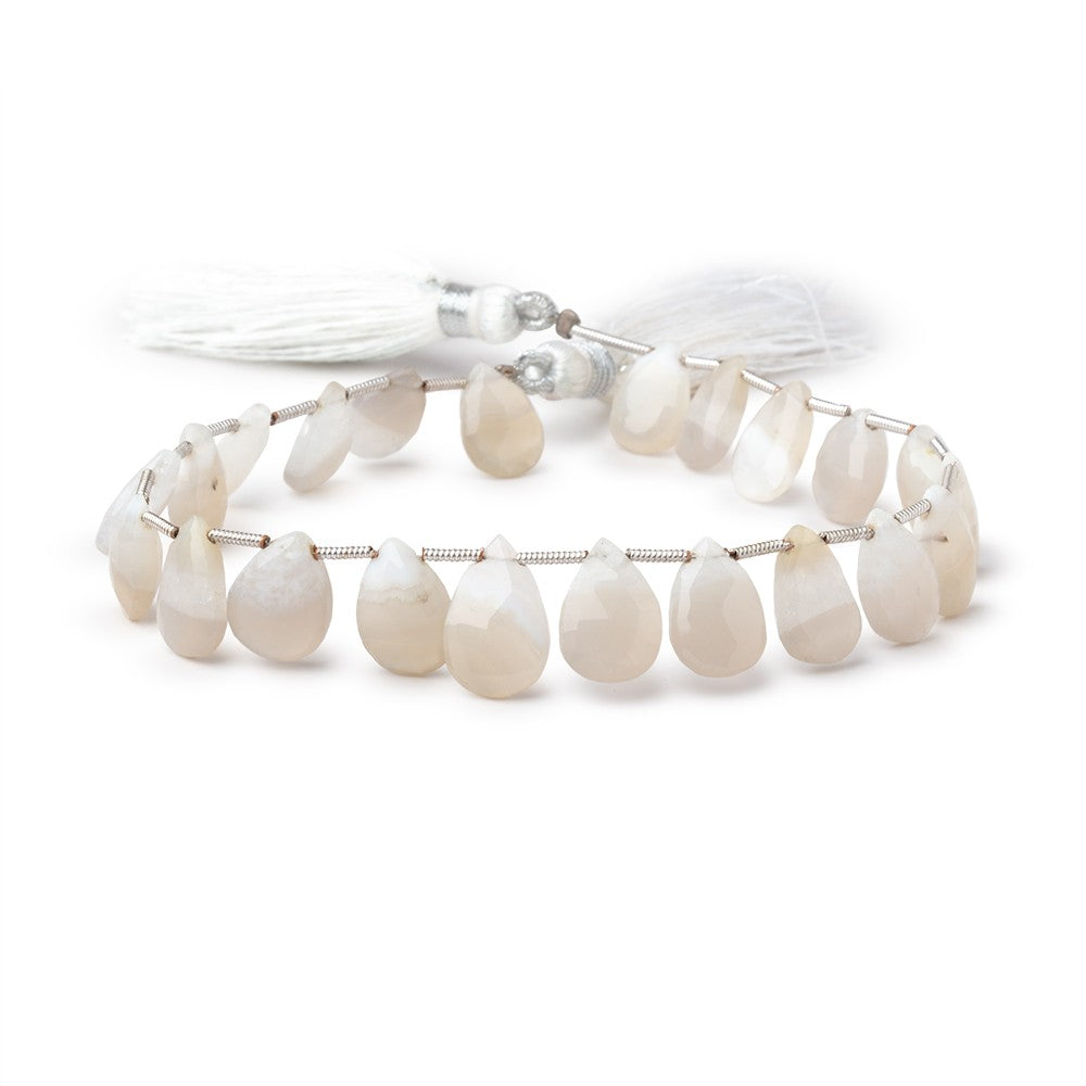 Bi-color Agate Faceted Pears have natural milky white and champagne hues on the translucent beads with symmetrical shapes and are well matched for patterning and quality on the strand.