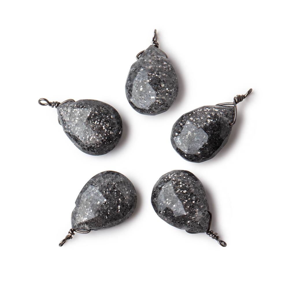 12x9mm Celestial Quartz faceted Pear shape Pendant wrapped with Black Gold over .925 Silver Wire at the top, sold as 1 focal bead.