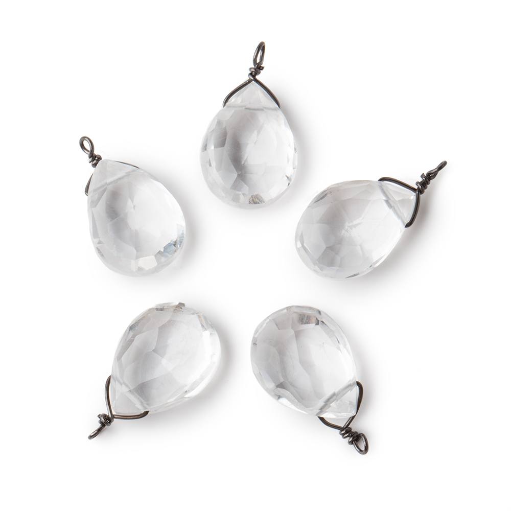 12x9mm Crystal Quartz faceted Pear shape Pendant wrapped with Black Gold over .925 Silver Wire at the top, sold as 1 focal bead.