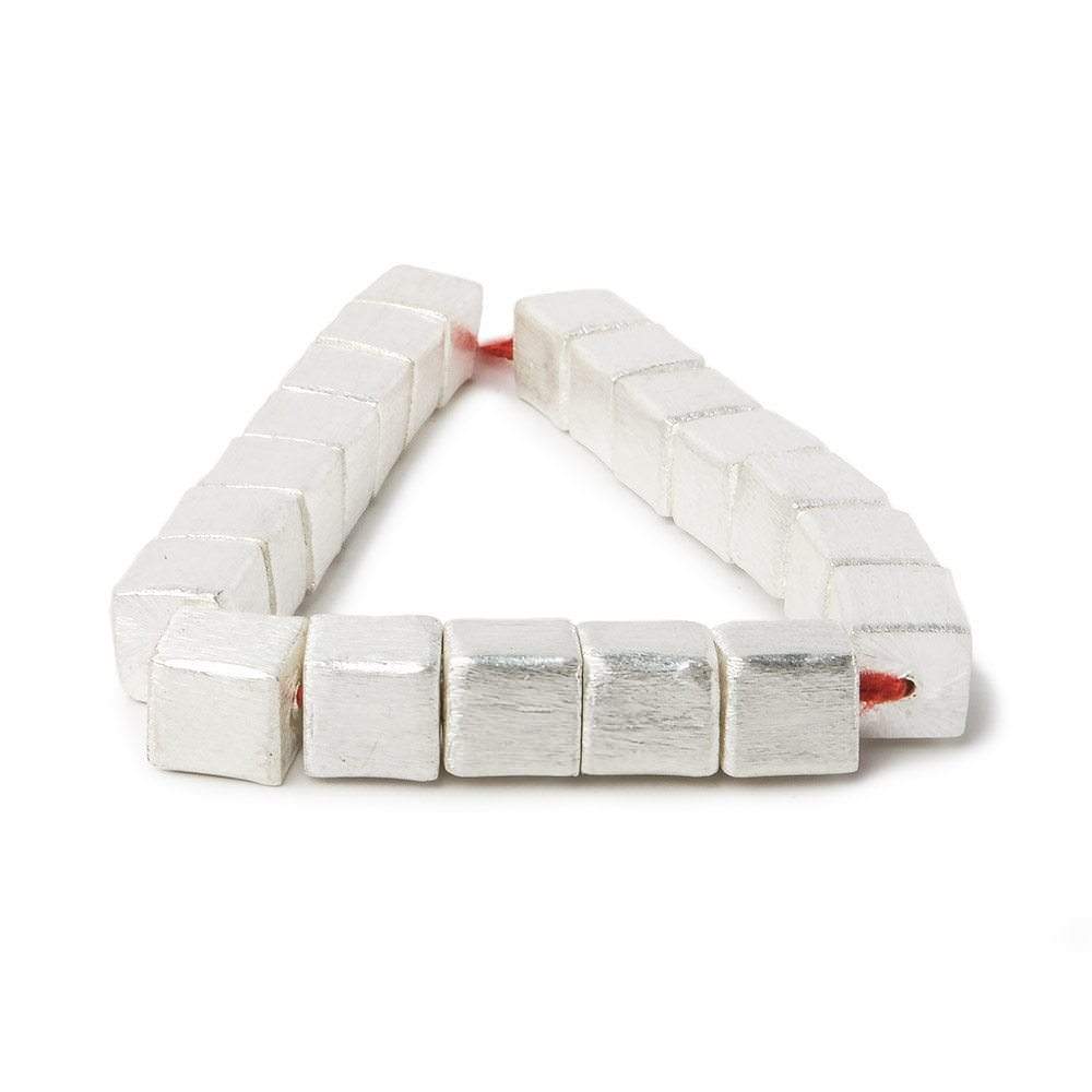 Sterling Silver plated Copper Brushed Cube Beads measure approximately 10mm diameter on the strand of 19 pieces.