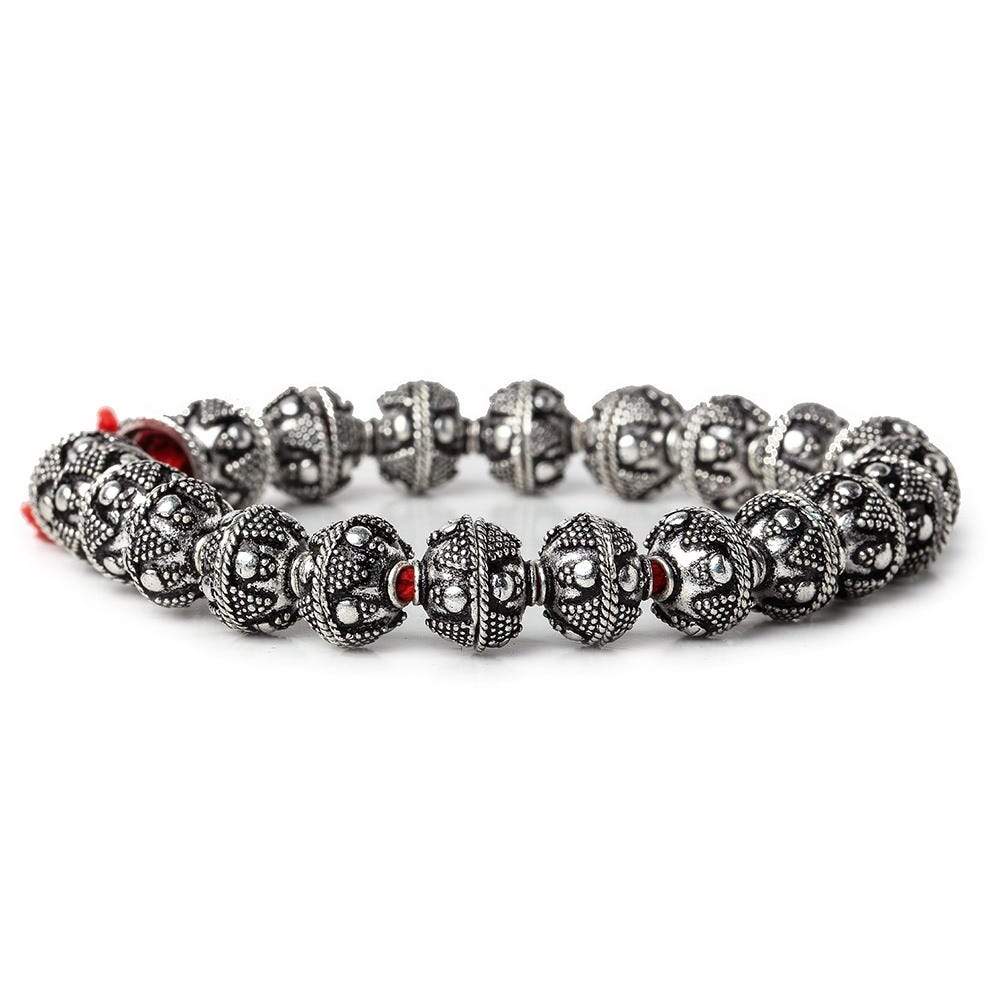 10mm Antiqued Sterling Silver Plated Copper Roval Miligrain Triangle & Plain Circle 8 inch 44 beads