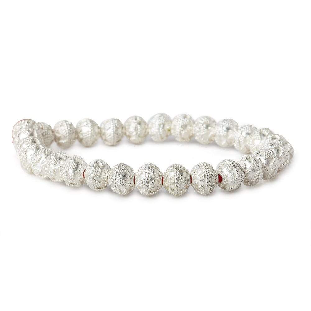 8mm Sterling Silver plated Copper Bead Round Miligrain Triangle Design 8 inch 28 pcs