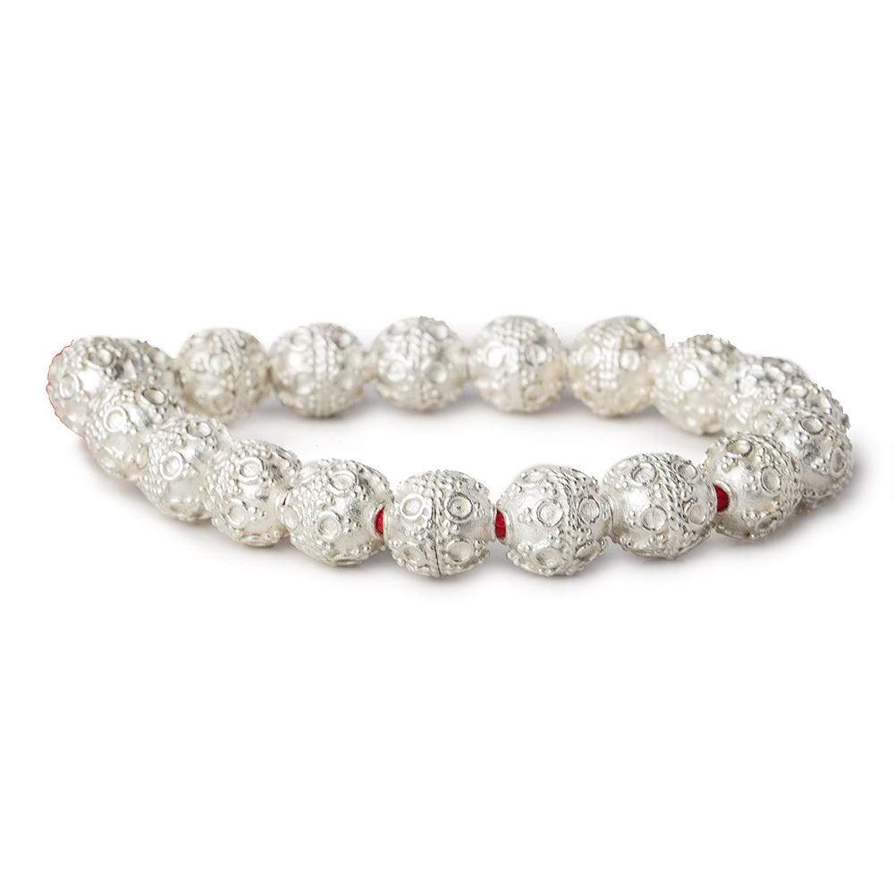 These Sterling Silver plated Copper beads have been created specifically for us. The unique miligrain and design features contain elements that will match other design elements throughout our metal bead collections. This particular group has been E Coated to ensure protection from the elements to maintain the Sterling Silver shine. These beads have a larger hole measuring approximately 2mm Inside Diameter.