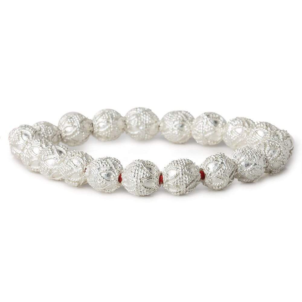 These Sterling Silver plated Copper beads have been created specifically for us. The unique miligrain and design features contain elements that will match other design elements throughout our metal bead collections. This particular group has been E Coated to ensure protection from the elements to maintain the Sterling Silver shine. These beads have a larger hole measuring approximately 2mm Inside Diameter.