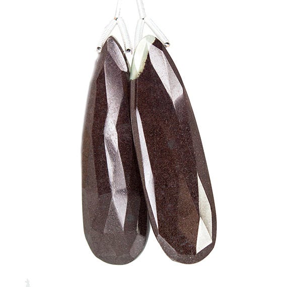 Prehnite and Matrix Faceted Pear Beads, 38x11x5-37x11x4mm, 2 pieces
